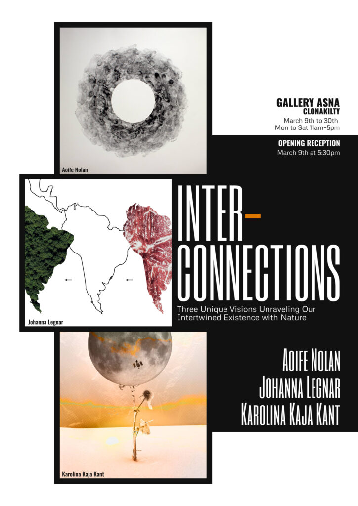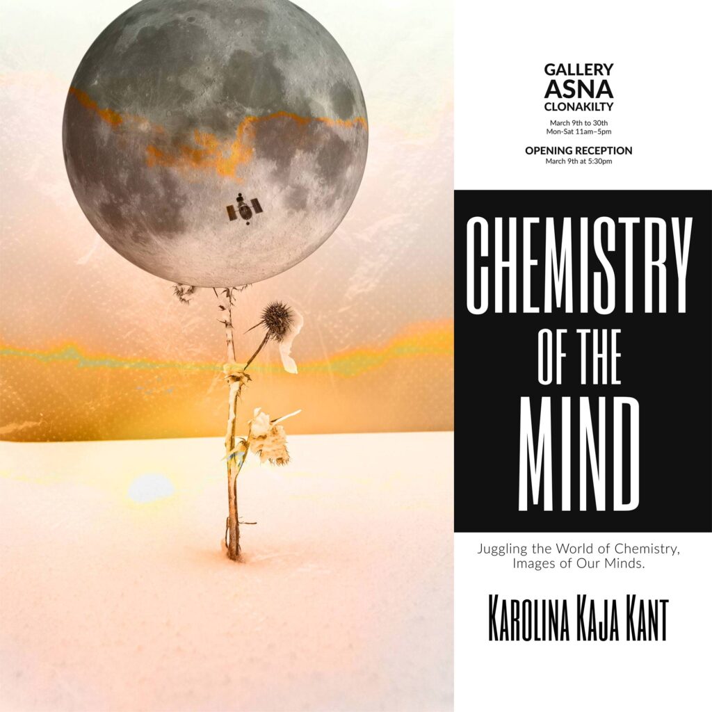 Wystawa „Interconnections„, prezentowana w Galerii Asna w dniach od 9 do 30 marca 2024, to zorganizowane badanie złożonych relacji między świadomością ludzką a światem natury. Segment Karoliny Kai Kant, „Chemia Umysłu”, wyróżnia się w tej wspólnej prezentacji, gdzie wraz z artystami Aoife Nolan i Johanną Legnar, tworzy zbiorową narrację wzajemnych powiązań.