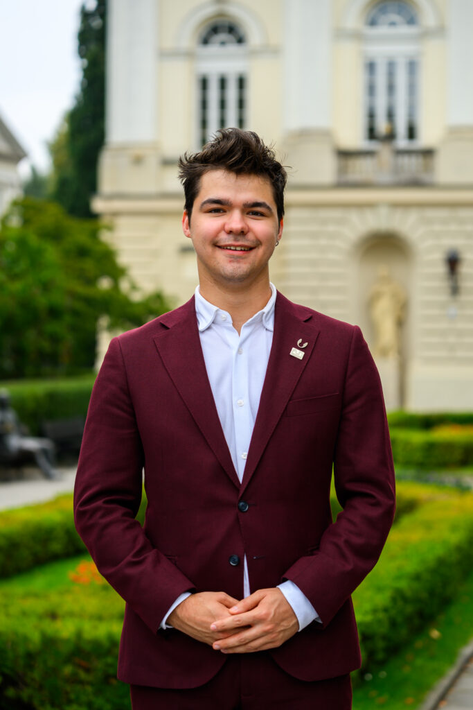 Poza uczelnią trenuję w Legia Rugby, co dobrze uczy pracy zespołowej i wytrwałości. Dodatkowo działam w rodzinnej firmie i przygotowuję się do otwarcia własnej działalności – dzięki temu zdobywam praktyczne doświadczenia, które często przydają się także w samorządzie. Kandyduję do Parlamentu Studenckiego, bo chcę, żeby studenci mieli realny wpływ na to, co dzieje się na naszej uczelni. Chcę wspierać nowe inicjatywy, pomagać w integracji i dbać o to, aby każdy czuł się częścią naszej społeczności.