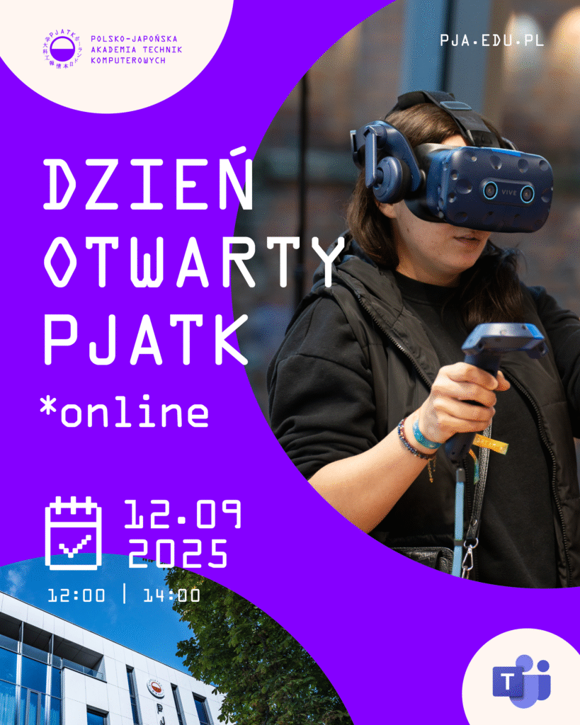 Zastanawiasz się nad studiami w Polsko-Japońskiej Akademii Technik Komputerowych? Chcesz dowiedzieć się więcej o kierunkach, atmosferze i możliwościach, jakie daje studiowanie u nas – ale wolisz zrobić to wygodnie, zdalnie? Już 12 września 2025 zapraszamy na Dzień Otwarty online.