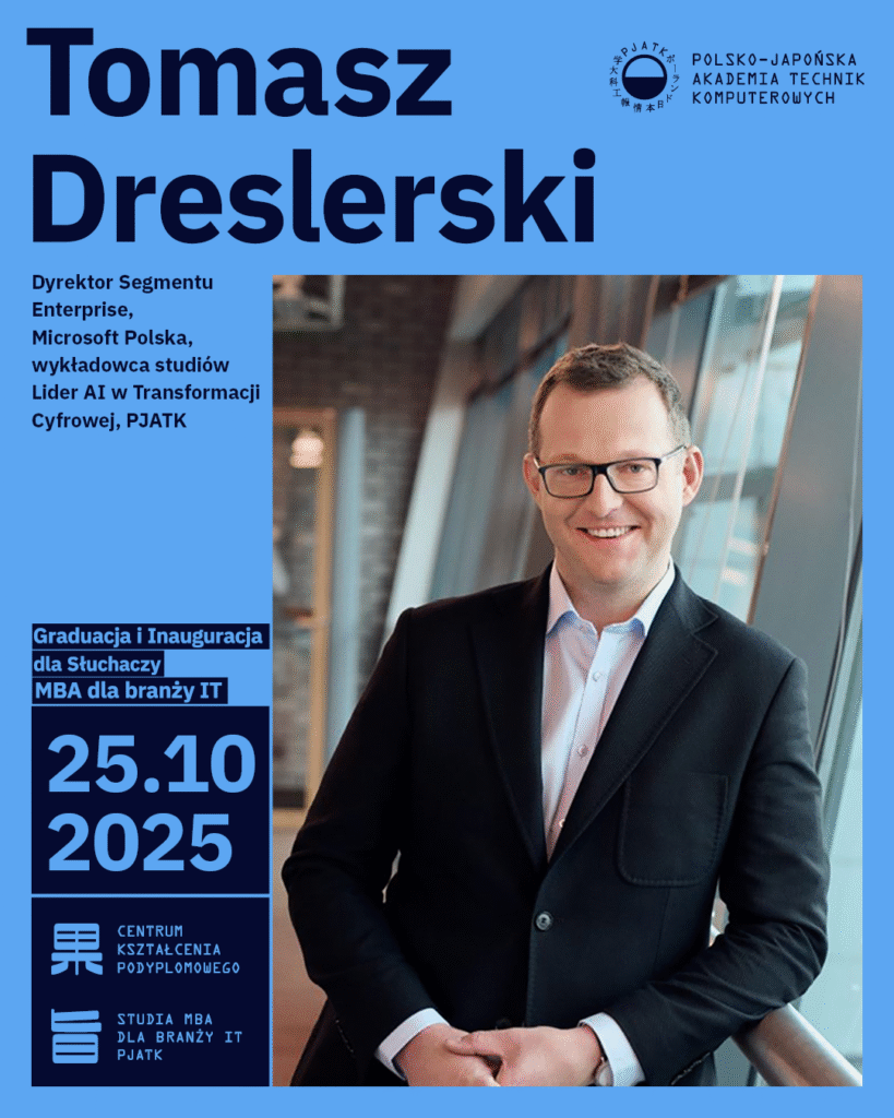 Tomasz Dreslerski – menedżer z ponad dwudziestoletnim doświadczeniem w sektorach ICT, finansowym i telekomunikacyjnym, obecnie pełniący funkcję Enterprise Commercial Lead w Microsoft Polska. Wcześniej związany m.in. z Orange Polska, gdzie odpowiadał za rozwój nowych obszarów biznesowych oraz transformację organizacyjną. Ukończył studia na Uniwersytecie Warszawskim, European School of Management (ESCP) oraz INSEAD.
