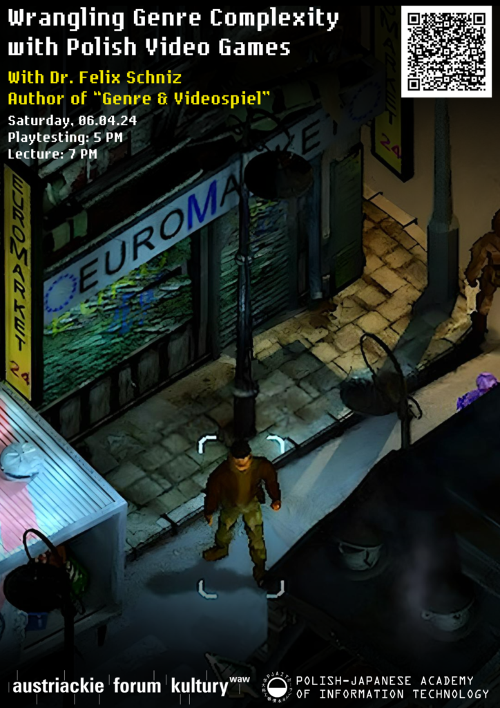 Zachęcamy do wzięcia udziału w wydarzeniu WRANGLING GENRE COMPLEXITY WITH POLISH VIDEO GAMES, które odbędzie się w dniu 6 kwietnia 2024 w Austriackim Forum Kultury w Warszawie, ul. Próżna 7/9.