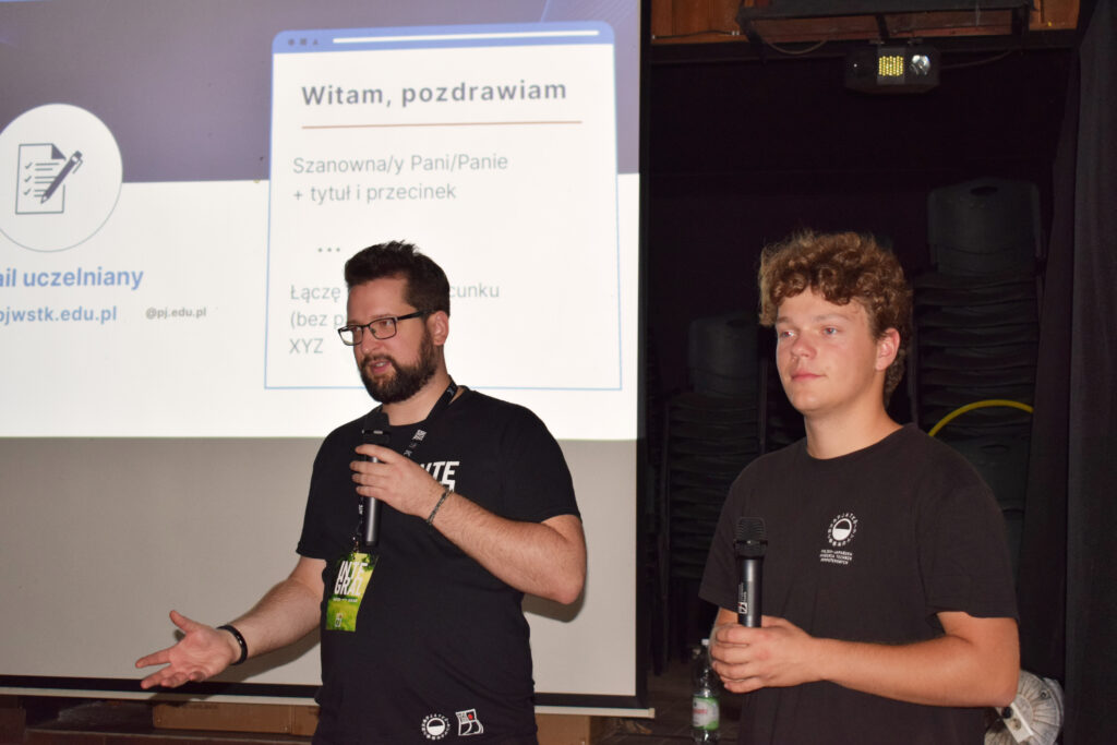 Maciej Pastor (wiceprzewodniczący komisji prawno-socjalnej oraz ekspert praw studenta) i Mikołaj Piołun-Noyszewski (wiceprzewodniczący Samorządu Studenckiego) dostarczyli praktycznych wskazówek i odpowiedzi na pytania, które często pojawiają się na początku drogi akademickiej.