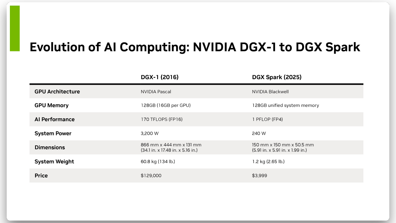 Jak podkreślił Huang, DGX-1 zapoczątkował erę superkomputerów AI, które napędzają współczesną sztuczną inteligencję. Z pierwszego systemu dostarczonego do OpenAI narodził się ChatGPT, który to rozpoczął rewolucję AI. DGX Spark ma nawiązać do tej misji – umieszczając komputer AI w rękach każdego dewelopera, aby rozpocząć kolejną falę przełomowych odkryć.