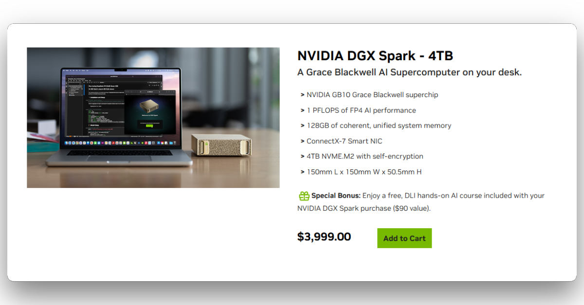 DGX Spark trafił do sprzedaży 15 października 2025 roku za pośrednictwem strony NVIDIA. Oprócz bezpośredniej sprzedaży, DGX Spark dostępny jest też u partnerów OEM, w tym Acer, ASUS, Dell Technologies, GIGABYTE, HP, Lenovo oraz MSIW.