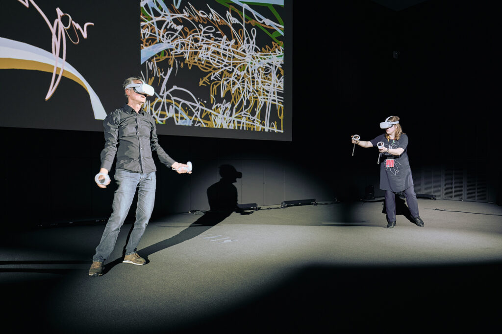 W maju tego roku na konferencji ATypI 2023 w Paryżu, w której wzieło aktywny udział wielu studentów oraz wykładowców naszej Uczelni, uczestnicy tego wydarzenia mieli też okazję doświadczyć niezwykłego kaligraficznego performance’u VR autorstwa wykładowczyni PJATK, Moniki Marek-Łuckiej oraz artysty wspierającego twórcze projekty PJATK Brodyego Neunschwandera.