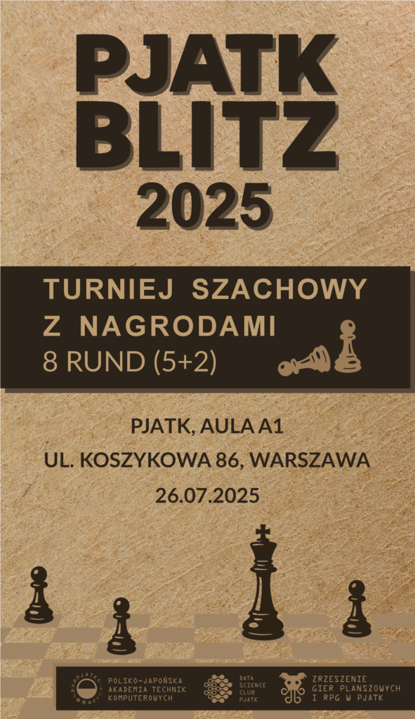 Data Science Club oraz Zrzeszenie Gier Planszowych zapraszają na wewnętrzny turniej PJATK Blitz 2025, organizowany przez studentów, z myślą o studentach, absolwentach i pracownikach uczelni.