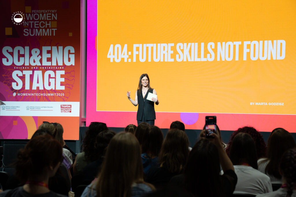 4 czerwca, już od samego rana, na scenie SCIENCE & EDU podczas pierwszego dnia konferencji Women in IT Summit 2025, wystąpiła Marta Godzisz, Dyrektor Centrum Kształcenia Podyplomowego i MBA dla Branży IT w Polsko-Japońskiej Akademii Technik Komputerowych. Jej prelekcja zatytułowana „404: Future skills not found”przyciągnęła uwagę szerokiej publiczności – tegoroczna edycja wydarzenia zgromadziła blisko 13 000 uczestniczek!