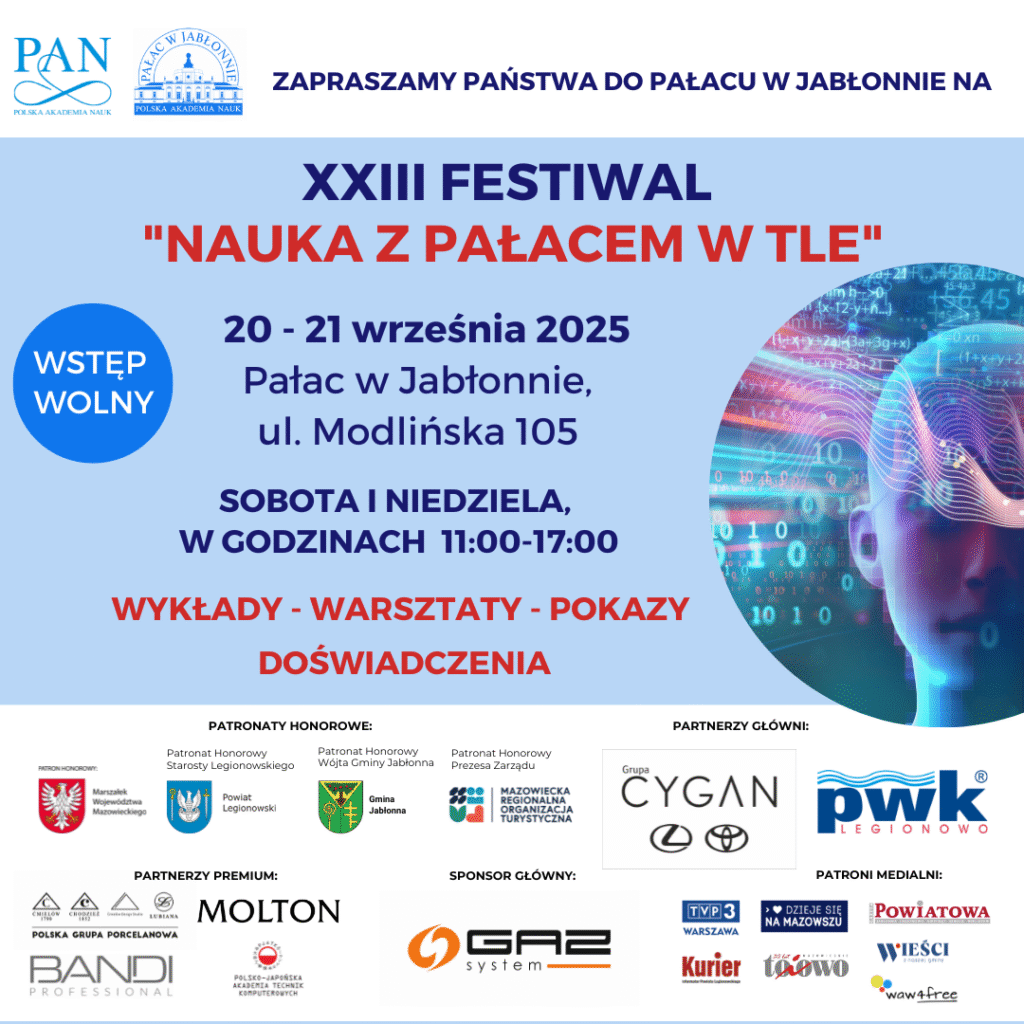 Z radością informujemy, że Polsko-Japońska Akademia Technik Komputerowych została partnerem XXII Festiwalu „Nauka z Pałacem w tle”, organizowanego przez PAN Dom Zjazdów i Konferencji w Jabłonnie. To jedno z największych wydarzeń popularyzujących naukę w regionie, odbywające się pod honorowym patronatem Prezesa Polskiej Akademii Nauk.