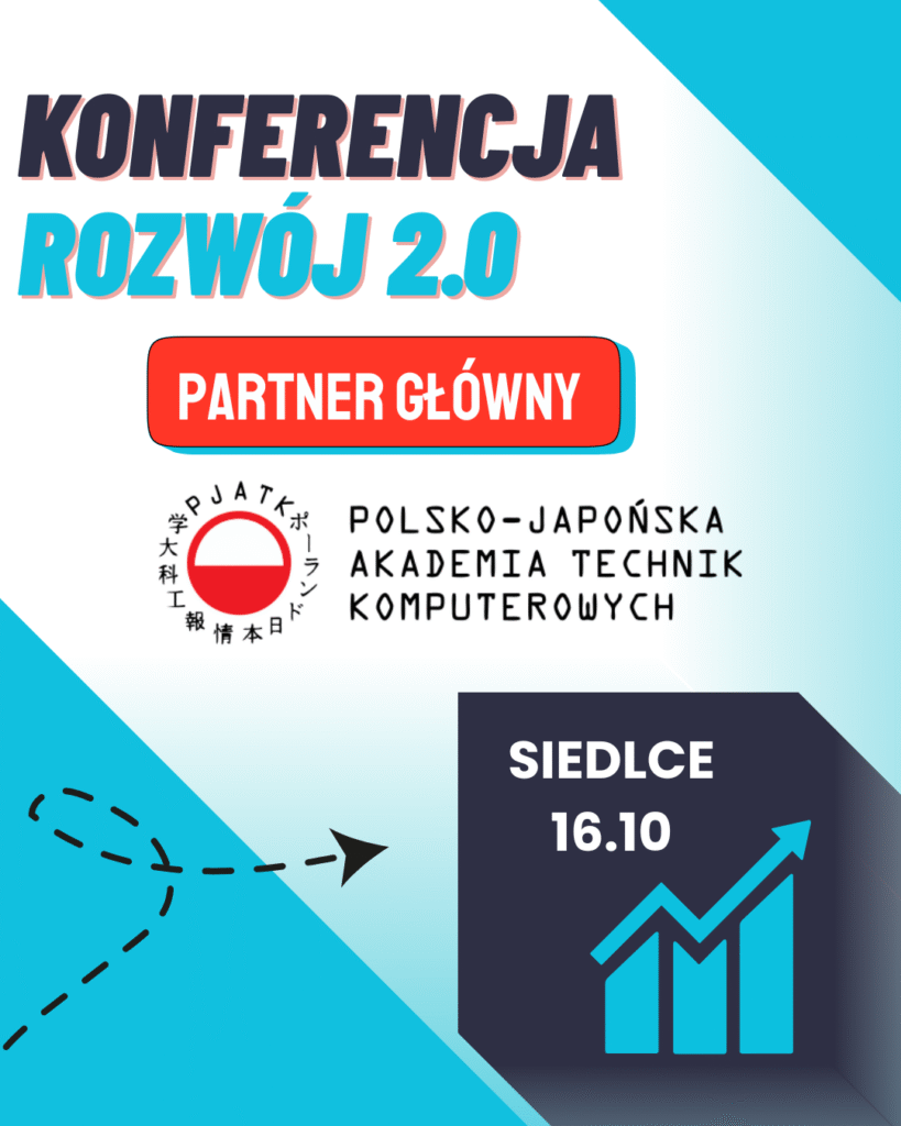 Rozwój polskiej młodzieży oraz budowanie autorytetów, które są przez dzisiejszą generację Z uznawane za ciekawe i inspirujące, to coś, co w PJATK staramy się robić na co dzień! Tym razem Prodziekan Wydziału Zarządzania Informacją, mgr inż. Piotr Gago, wystąpi ze swoją prelekcją pt. „Kosmos możliwości: po co studiować, gdy świat pędzi?”. Z dumą informujemy, że Polsko-Japońska Akademia Technik Komputerowych już po raz drugi została Partnerem Głównym konferencji Rozwój 2.0 — ogólnopolskiego projektu edukacyjnego tworzonego przez uczniów I Liceum Ogólnokształcącego im. Bolesława Prusa w Siedlcach.