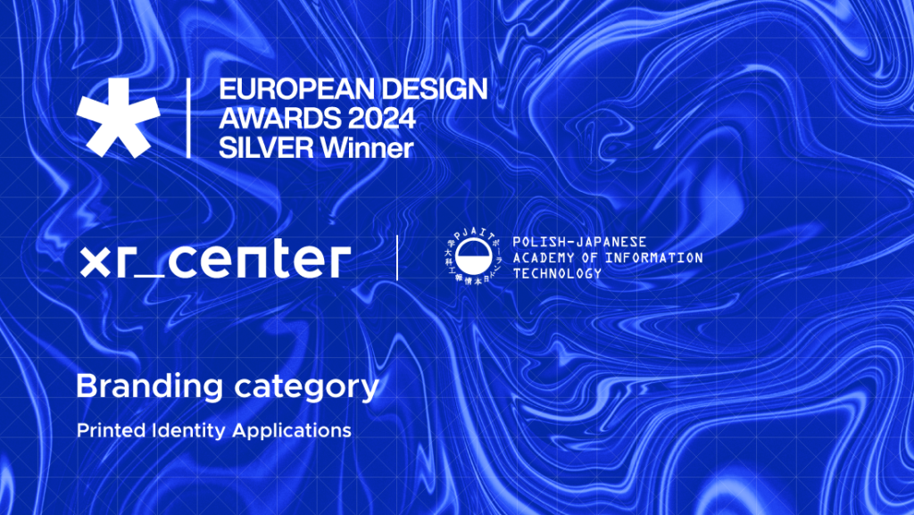Projekt identyfikacji wizualnej dla XR_Center PJATK wykonany przez dr Mateusza Szewczyka w ramach kooperacji Art & Design Lab zdobył srebro na European Design Awards 2024 w kategorii Branding / Print Identity Applications.