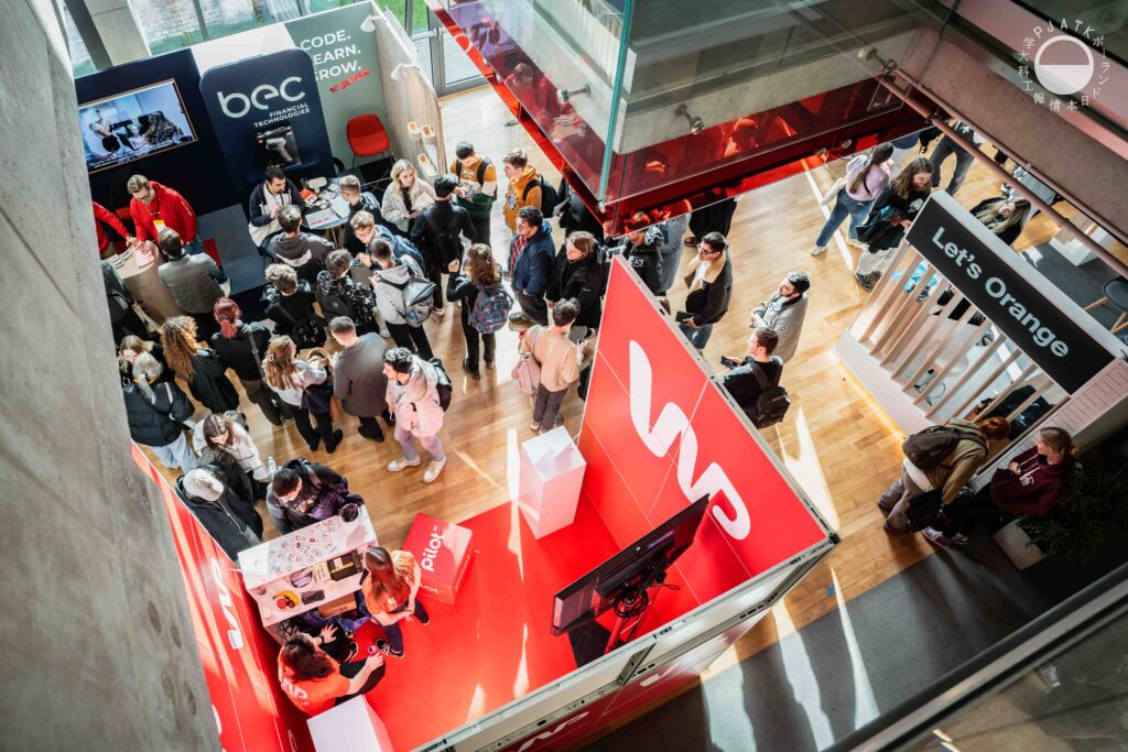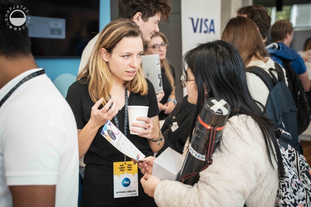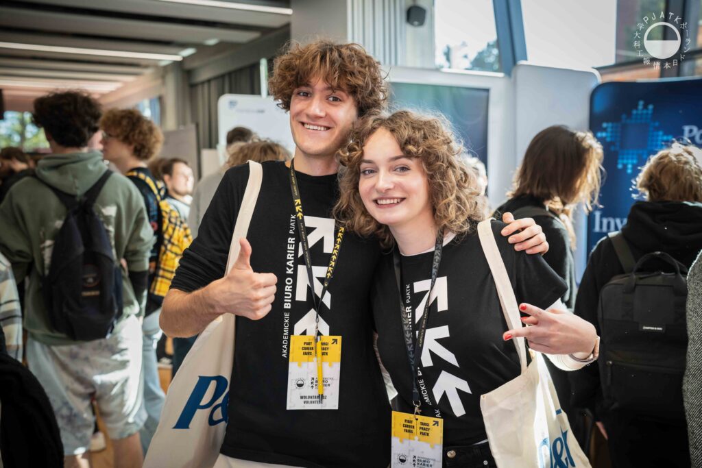 Za nami jesienna edycja Targów Pracy PJATK. Przyszłych stażystów oraz pracowników pośród studentek i studentów PJATK poszukiwało kilkanaście firm informatycznych, technologicznych i nie tylko, m.in. partnerzy flagowi PJATK – Orange i WP, a także KPMG, P&G, Visa i KNF. Oprócz gadżetów i konkursów, przedstawiciele firm przede wszystkim informowali zainteresowanych o możliwościach, jakie przygotowali dla dopiero wchodzących na rynek pracy przyszłych specjalistów.