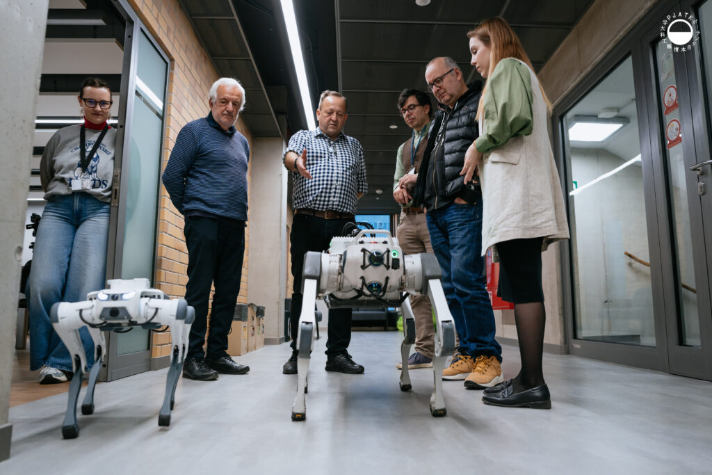W poniedziałek Katedra Mechaniki, Informatyki i Robotyki w Polsko-Japońskiej Akademii Technik Komputerowych miała niezwykłych gości. Dwa psy robotyczne przechadzały się korytarzami uczelni, demonstrując swoje funkcje i możliwości. Robot RHINO Pro z kamerą termowizyjną oraz robot SID1 Venture zostały zaprezentowane w ramach zajęć studentów z wydziału Informatyki PJATK.