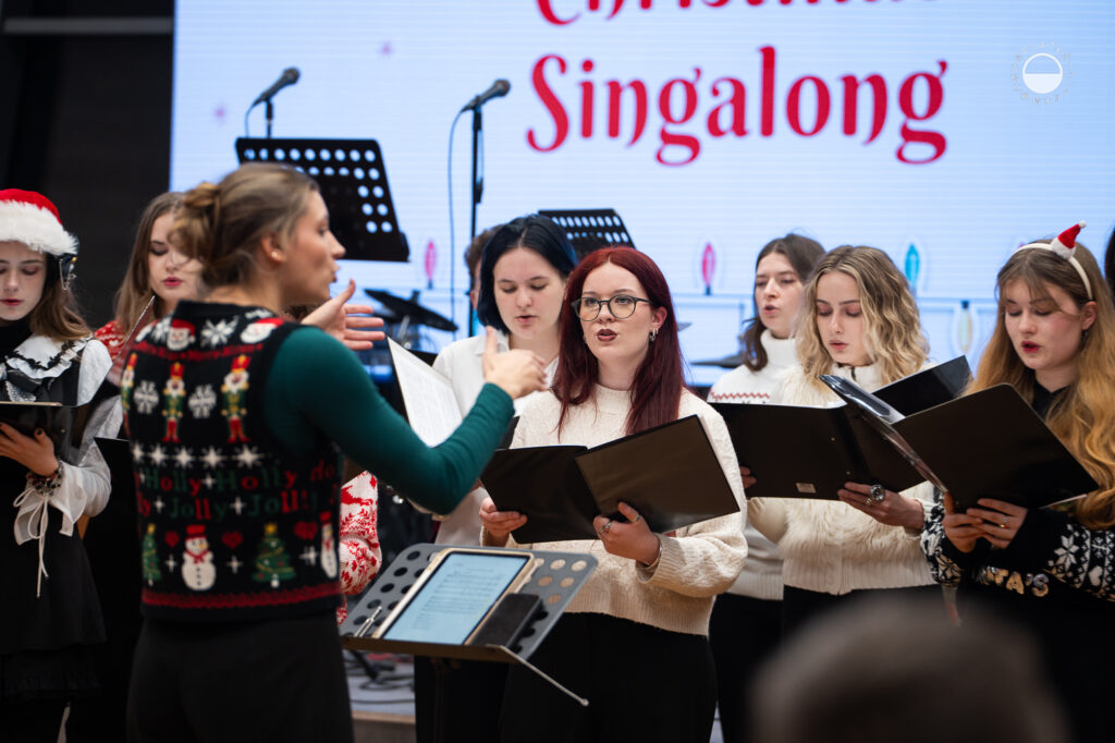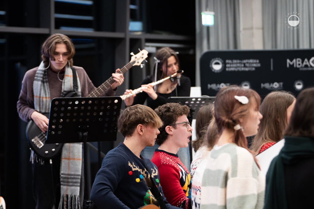 Na scenie wystąpili Chór Melograno PJATK oraz Music Society PJATK, prezentując specjalnie przygotowany, zimowy repertuar. Wspólnie mogliśmy usłyszeć zarówno klasyczne, jak i międzynarodowe świąteczne utwory — Last Christmas, Wśród nocnej ciszy, Let It Snow, a także poruszający ukraiński utwór Щедрик (Dzwoneczków dźwięk).