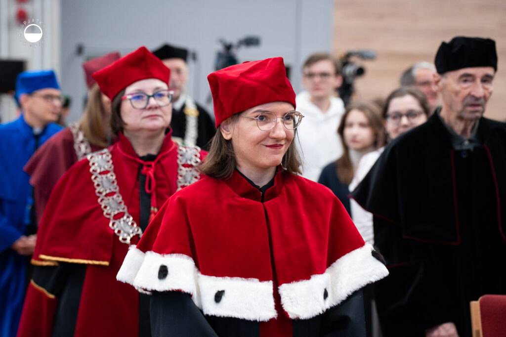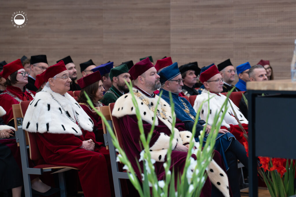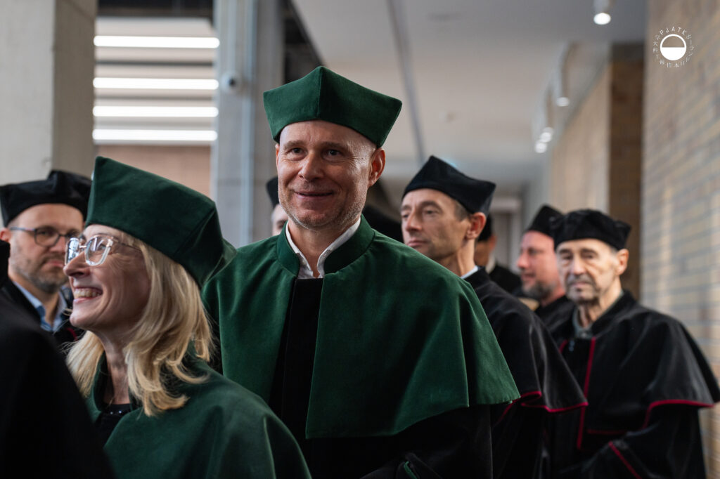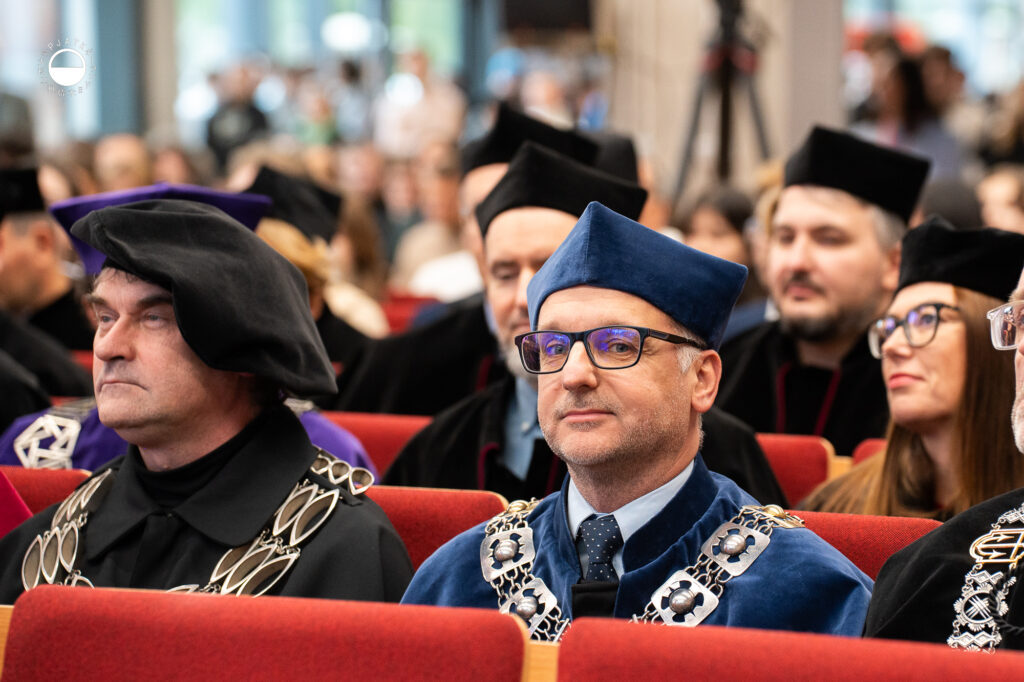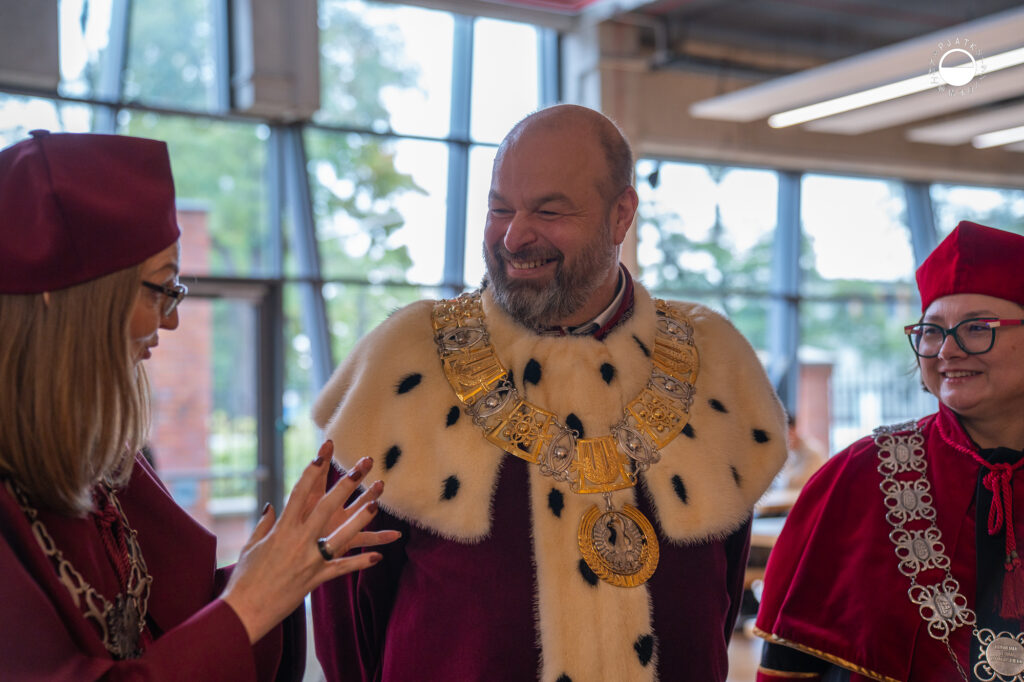 Głos zabrali też przedstawiciele studentów oraz doktorantów. Pan Mikołaja Piołun- Noyszewski, przewodniczący Samorządu Studenckiego, apelował do studentów, by w dobie rozwoju sztucznej inteligencji nie zapominali o pielęgnowaniu kompetencji ludzkich. Zachęcił również nowe osoby studenckie do angażowania się w życie Akademii poprzez udział w wydarzeniach, członkostwo w Kołach Naukowych oraz wolontariat.