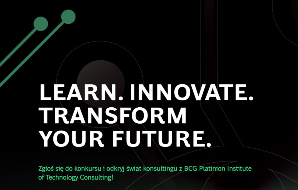 Drodzy studenci, zachęcamy Was do udziału w wyjątkowym konkursie – BCG Platinion Institute of Technology Consulting. Czeka na Was nie tylko nowa wiedza w zakresie technologii i biznesu, ale także wyzwanie, w którym możecie wygrać nagrodę główną –
