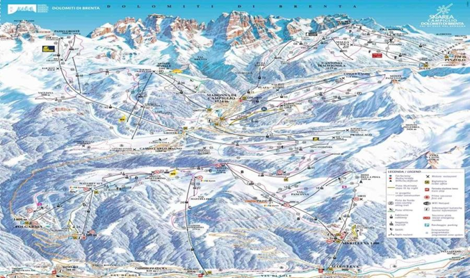 The extended ski pass grants access to Marilleva, Folgarida, Madonna di Campiglio, and Pinzolo, totaling over 165 km of slopes. The pass can be purchased for an additional €85, or extended individually for €30/day. Madonna di Campiglio is renowned for its long winter sports tradition, offering high-altitude skiing, while Pinzolo provides 35 km of excellent, less crowded slopes, including a challenging black run. The resort has 16 gondolas, 33 chairlifts, 10 drag lifts, and 4 snowparks.