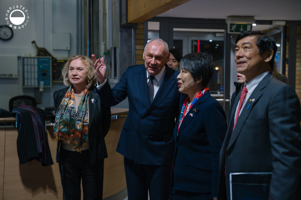 W pierwszej części spotkania z Panią Minister Kamikawą uczestniczył Rektor PJATK, prof. Jerzy Paweł Nowacki, Prorektor ds. Nauki, prof. Maria Elżbieta Orłowska, Ambasador Japonii w Polsce Pan Akio Miyajima, studenci Polsko-Japońskiej Akademii Technik Komputerowych oraz słuchaczki i nauczyciele kursu z zakresu umiejętności IT.