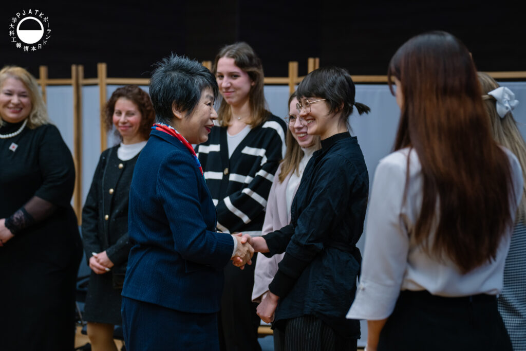 Minister Yōko Kamikawa zapewniła, że Japonia będzie kontynuowała wsparcie dla Ukraińców przebywających w Polsce, stwarzając im nowe możliwości kształcenia i doskonalenia swoich umiejętności, a studentów Wydziału Kultury Japonii zachęciła do dalszego zgłębiania języka japońskiego i inspirujących podróży do Japonii.