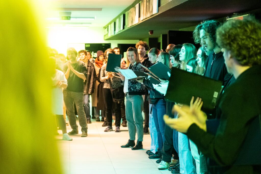 Performans „IT MIGHT NOT WORK OUT” był spotkaniem i zbliżeniem grupy artystów – przedstawicieli AST w Krakowie Filii we Wrocławiu, Akademii Muzycznej we Wrocławiu, Akademii Sztuk Pięknych we Wrocławiu, aktorów, scenografów oraz Wydziału Sztuki Nowych Mediów PJATK.