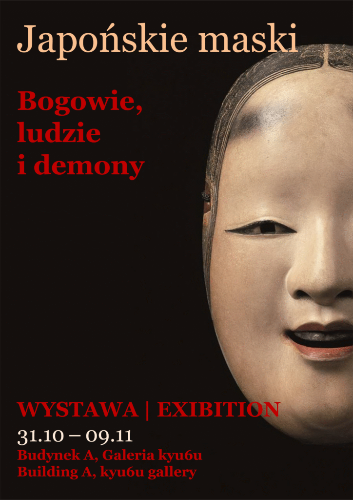 Zapraszam Wszystkich do obejrzenia wystawy japońskich masek pt. „Bogowie, ludzie i demony”. która zaczyna się w piątek 31-go października o godzinie 9:00 i będzie trwać do 9-go listopada do godziny 17. Wystawa odbywa się w przestrzeni kyubu w budynku A.