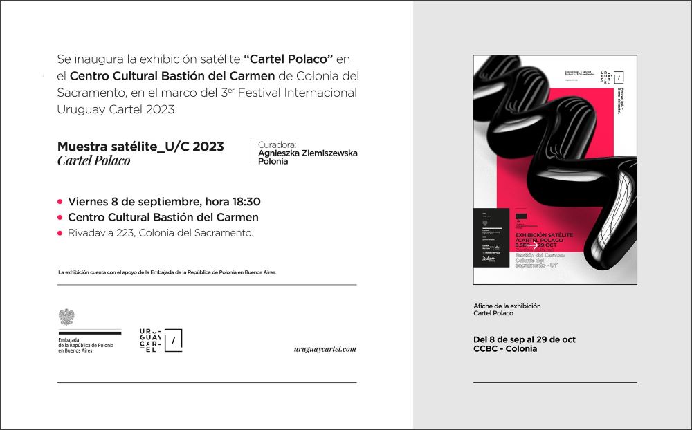 W dniu 8 września br. w ramach w ramach trzeciej edycji Festival Internacional Uruguay Cartel 2023 zostanie otwarta wystawa „Plakat Polski”, na którą składa się wybór 25 plakatów.