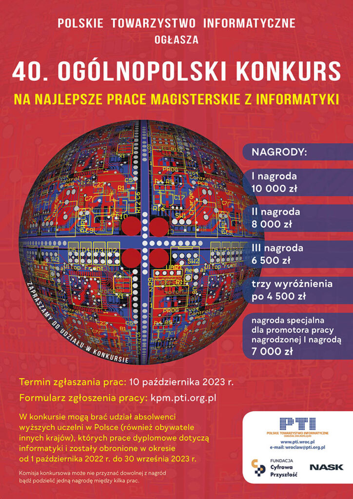W konkursie mogą brać udział dyplomanci kierunków informatycznych oraz innych kierunków studiów, których prace dotyczą informatyki, którzy obronili się w okresie od 1.10.2022 do 30.09.2023.