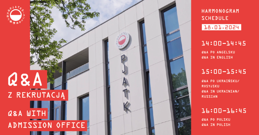 Nowy Rok za rogiem, a już w styczniu zaczynamy sezon rekrutacyjny dla kandydatów na studia w Polsko-Japońskiej Akademii Technik Komputerowych! Co miesiąc czekają na Was wydarzenia (stacjonarne i online), dzięki którym lepiej poznacie naszą Uczelnię i przekonacie się, że to idealne miejsce dla Was!